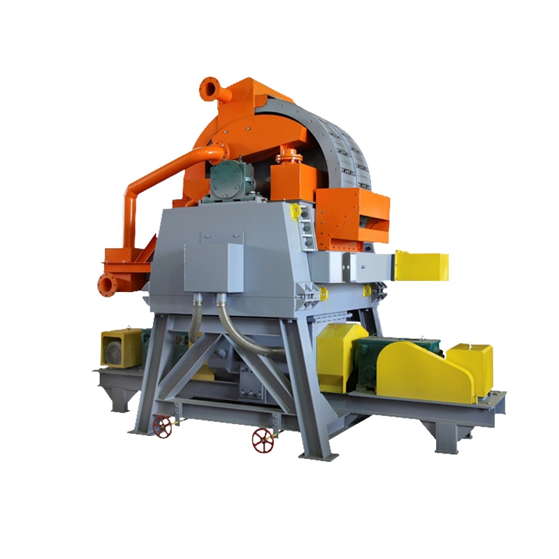 一、用途永磁筒式磁選機適用于濕式分選細顆粒的強磁性礦物。被選礦物的比磁化系數(shù)一般不小于3000×10-6厘米3/克。屬于這類礦物質(zhì)的有磁鐵礦、磁黃鐵礦或經(jīng)磁化焙燒的赤鐵礦、褐鐵礦、菱鐵礦等。二、工作原理礦漿經(jīng)給礦箱給入磁選機槽體,呈松散狀態(tài)進入給礦區(qū)。經(jīng)磁場區(qū)時,其中磁性較強的礦粒在磁系磁場力的作用下,被吸附在圓筒表面上,在圓筒旋轉(zhuǎn)過程中,由于磁系的磁性沿圓周方向交替排列,使磁性礦粒成鏈地進行翻動,夾雜在磁性礦物中的一部分脈石礦粒被清除出去,磁性礦粒隨圓筒旋轉(zhuǎn),被帶出磁場區(qū),用沖洗水沖入精礦槽中。弱磁和非磁性礦物(脈石)被甩掉,在槽內(nèi)礦漿流的作用下,從尾礦槽排出,從而完成分選過程。三、設(shè)備結(jié)構(gòu)永磁筒式磁選機主要由傳動裝置、永磁滾筒、槽體和機架四個部分組成(見圖)。永磁滾筒是由防磁的不銹鋼板卷成,筒體表面有耐磨層。永磁滾筒內(nèi)裝有磁系。磁系是磁選機產(chǎn)生磁力的機構(gòu)。CTB型的磁選機的磁極由高性能鍶鐵氧體永磁磁塊組成。磁系固定不旋轉(zhuǎn);磁系偏角(磁極中心線偏向精粉排出端與垂直線的夾角)可通過固定在軸上的搬手來調(diào)節(jié)。四、應用范圍槽體分逆流槽、順流槽和半逆流槽三種。半逆流槽用的比較廣泛。1.逆流槽適用于礦石粒度為0.6_x001f__x001f_—0mm的粗選和掃選。2.順流槽適用于礦石粒度為6—0mm的粗選和精選。3.半逆流槽適用于礦石粒度為1—0mm的粗選和精選。五、使用說明1.開車前要檢查電源、傳動裝置、潤滑系統(tǒng)和設(shè)備周圍有無障礙物,確認正常時方可開車。2.開車前先打開設(shè)備和水管,然后給礦,經(jīng)調(diào)整后進行正常工作。3.減速機和軸承要定期加油,保證正常潤滑。4.在設(shè)備運輸和安裝過程中要特別注意不要碰撞筒皮。安裝后要進行2—4小時空運轉(zhuǎn)。5.運轉(zhuǎn)過程中不得有擦碰聲。發(fā)現(xiàn)筒體有咔咔響聲,應立即停車檢查。6.磁系不得接觸高溫,也不許有較大的振動。7.磁偏角要調(diào)節(jié)適當,才能取得良好的分選效果。可用調(diào)節(jié)軸端絲杠來調(diào)節(jié)磁系偏角。8.給礦量、給礦粒度和給礦濃度要符合技術(shù)要求。六、本機特點可以連續(xù)給礦和排礦,磁場強度高,磁場深度大,工作間隙大,因此,具有較高的生產(chǎn)能力,且體積小,重量輕,效率高,電耗少,結(jié)構(gòu)簡單,使用安全,維修方便,經(jīng)久耐用。